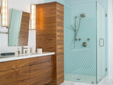 Sure, an all-white bathroom exudes cleanliness. But a neutral bath tends to have the added effect of feeling sterile. These three bathrooms show how a bit of color — introduced in three different ways — can uplift a space without taking away the freshness.