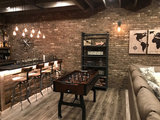 Sometimes you just want to get out of the house for a night on the town. But these homeowners wanted to create that feeling right at home. They transformed their unfinished, concrete-lined basement to include a bar, pool table, foosball table and movie-theater lounge area all in one large, industrial-style...