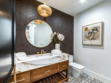 Powder rooms are a great spot for daring design. That’s because the door is usually closed and the space is small and intimate, so the style can diverge from the style
