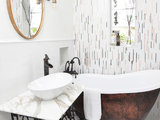 “This is the smallest bathroom I’ve ever designed,” says interior designer Nicole White. Working with just over 32 square feet and a room width that could not accommodate a standard-size bathtub, she had to get creative. In the end, White managed to squeeze in all the elements and make the room appear...