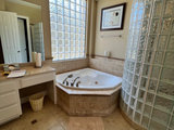 This empty-nest couple liked the overall layout of their bathroom. But the abundance of basic 1990s finishes hardly gave them the soothing spa feel they wanted. Tired of the glass-block-enclosed shower, standard white vanities, a massive built-in jetted tub and loose and chipped beige tile, they hired...